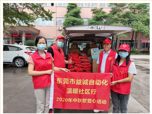 2020年9月19日,值中秋节来临之际,益诚自动化义工队与社区服务机构开展了送温䁔、献爱心活动。